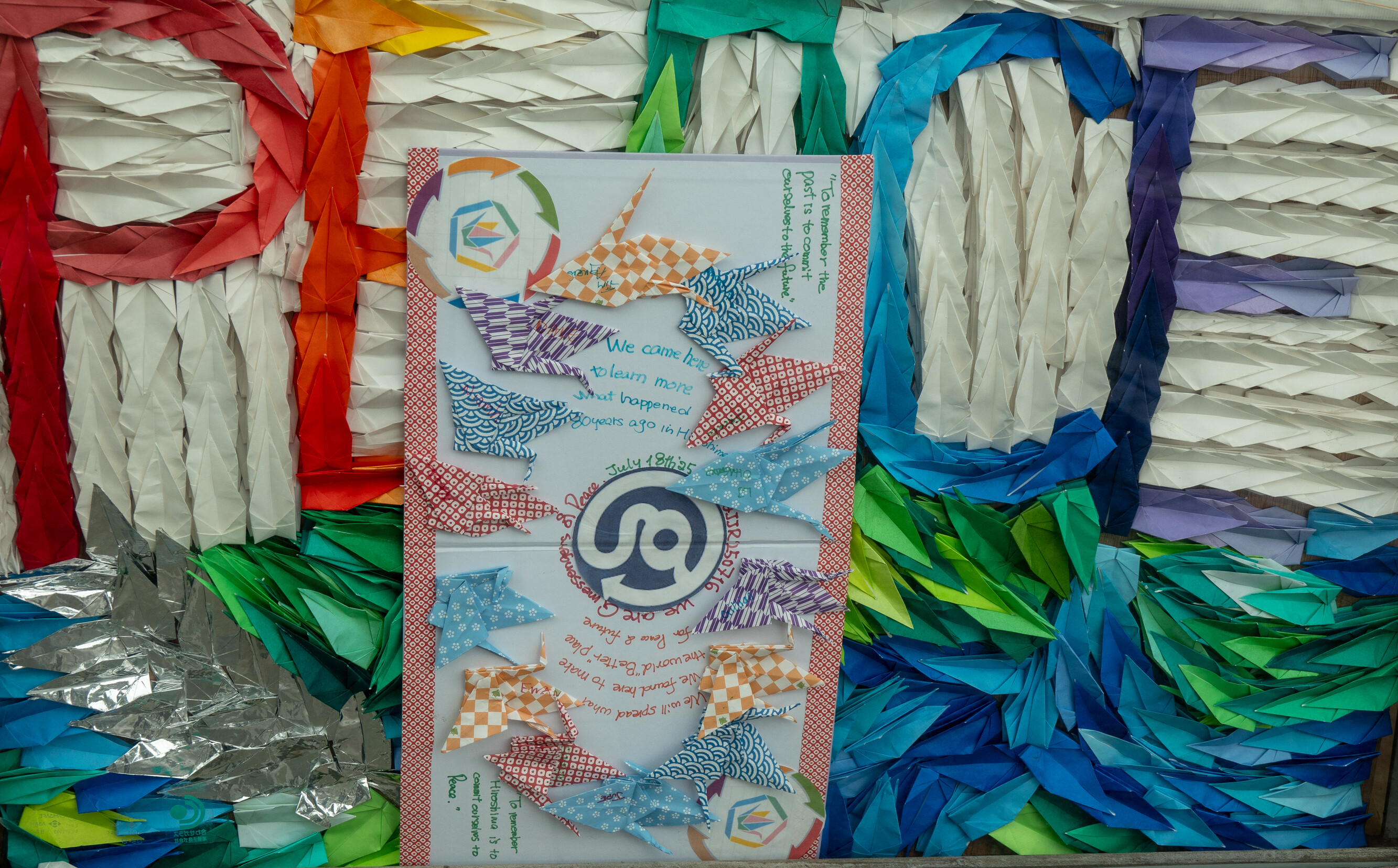 Folded cranes arranged in memory of 80th anniversary of the bombing