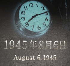 There is a prescribed tour path to follow which begins with a clock showing August 6, 1945 and a satellite aerial view of the city centered at the blast zone. We move on to exhibits named "Cries of the Soul". I listen to the stories of the tricycle, belongings of junior high school students, the lunch box. The audio stories continue. There are some gloves, a tattered blouse. They go on. I think there are 60 or more of these. I find a seat in a quiet corner in the dark gallery and listen to many of the stories. It's pretty depressing, and there are 60 or 70 of these stories on the audio guide.