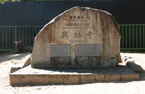 A stone's throw from the train station is Kofukuji Temple. Next to a sleeping deer is a big stone sign noting its WH status. I take time to enter the grounds and check out the pagoda, but there's a lot more to see in Nara, and I'm saving my energy for the Big Buddha visit!