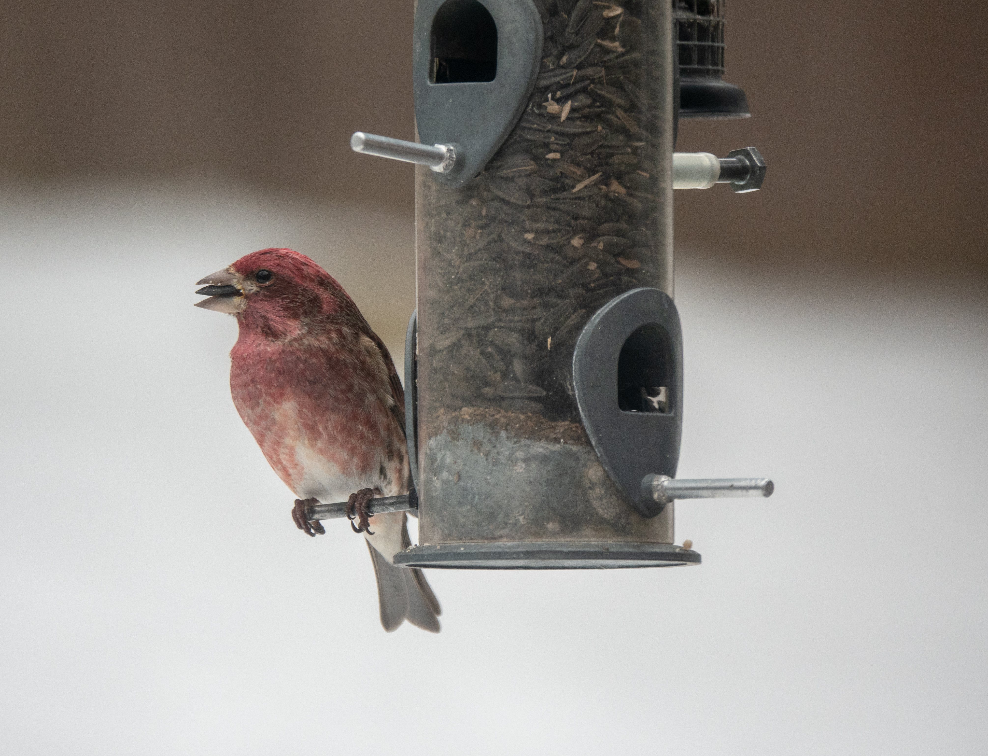 These finches mix in with the house finches at the feeder on occasion. Spotted the first feeder finch, a female, in May 2019 and initially didn't know what it was.