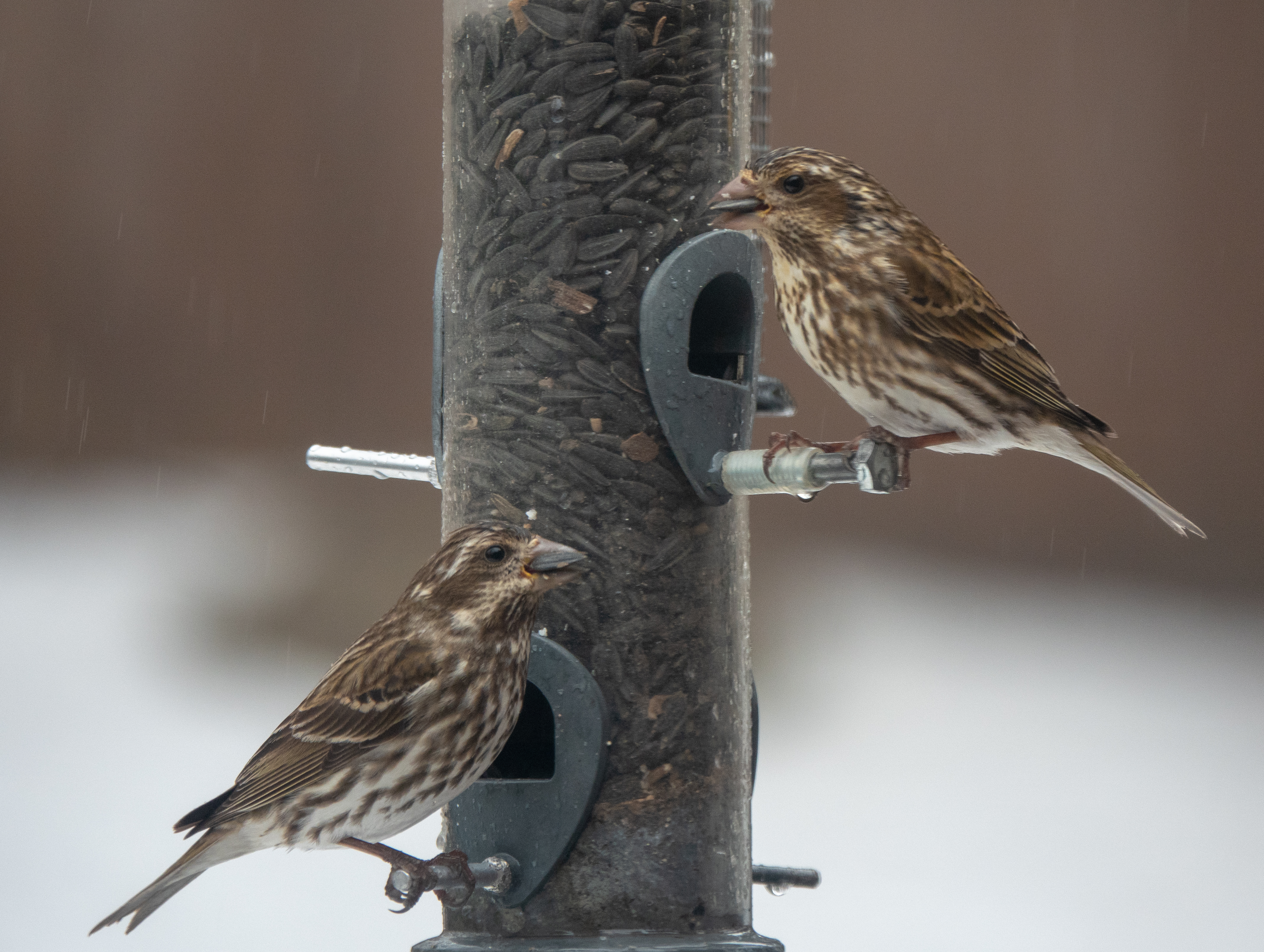 These finches mix in with the house finches at the feeder on occasion. Spotted the first feeder finch, a female, in May 2019 and initially didn't know what it was.