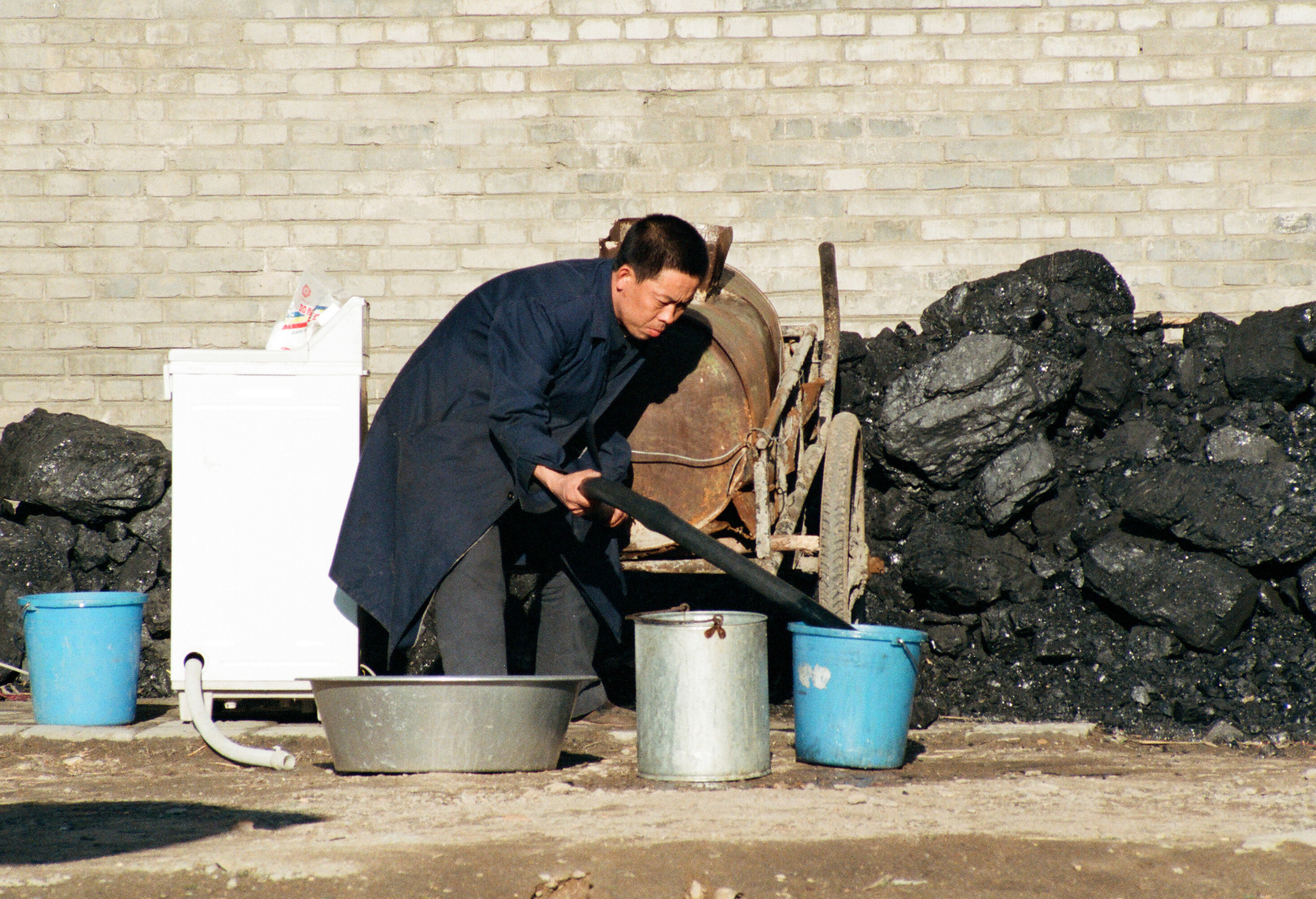 Stacks of Coal next to the laundry area