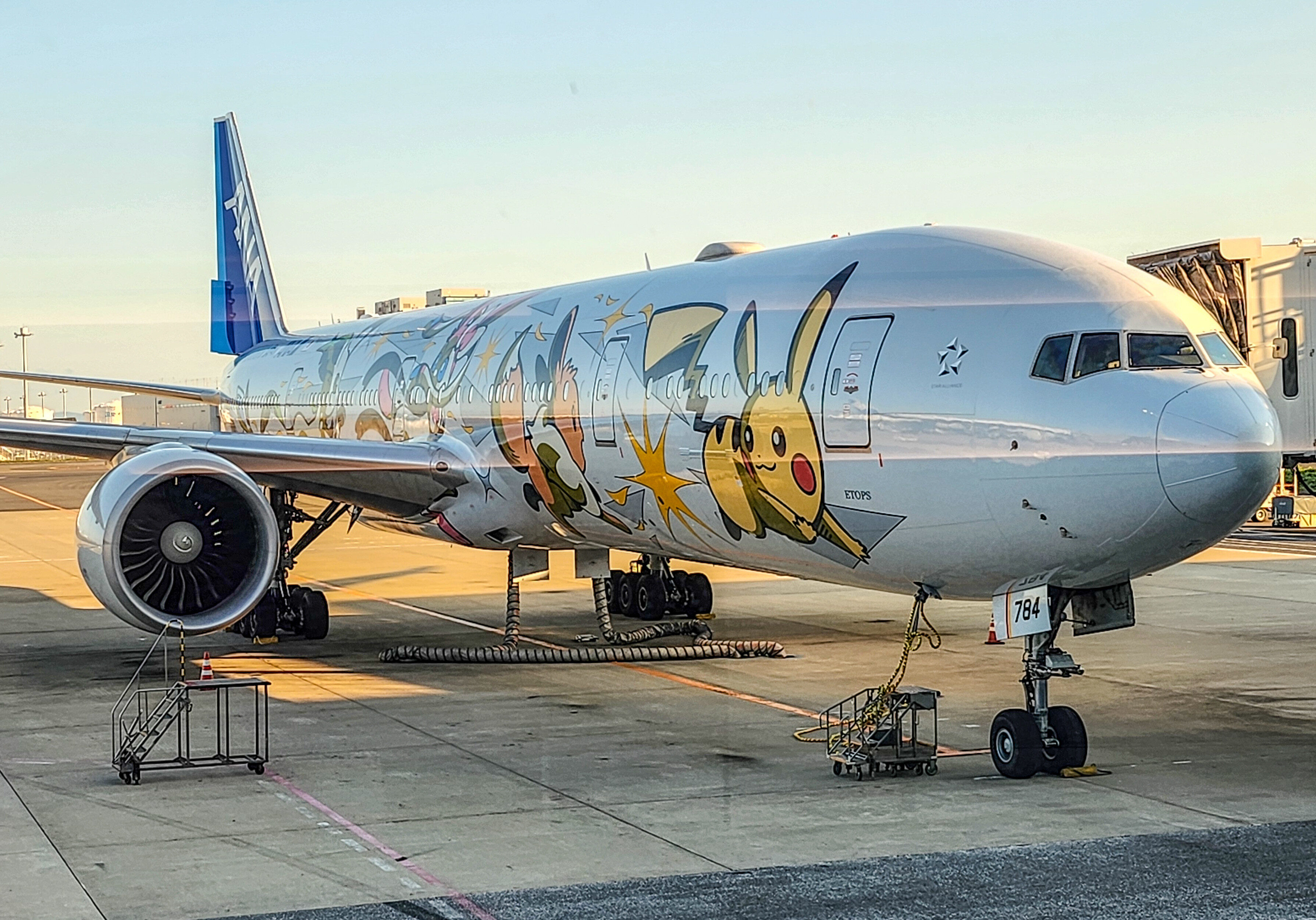 My original JAL flight was cancelled due to maintenance reasons, but I fortunately was able to get re-booked on an ANA flight. I don't know why All Nippon Air chose the Pikachu character as a mascot, but the on board videos showed us cute scenes with Pikachu and other Pokemon characters explaining the safety features, and the plane itself was colorfully illustrated.