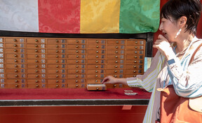 The most interesting spot was at the OMIKUJI. Omikuji are strips of paper containing fortunes. There was a set-up with a cylinder that one shakes to release a numbered stick which corresponded to a numbered drawer with papers containing your fortune or misfortune.