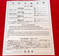 I put my 100Yen coin in, shook my stick and pulled my fortune from drawer #64. Oh no! It was a bad fortune and read: