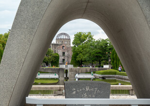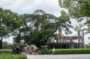 The Hiroshima Peace Memorial (Genbaku Dome) was the only structure left standing in the area where the first atomic bomb exploded on August 6, 1945. It is the ruins of the former Hiroshima Prefecture Commercial Exhibition Hall, and has been preserved in the same state as immediately after the bombing. It is a stark and powerful symbol of the terrible destructive force created by humankind, that strives to express a hope for world peace. Not holding my breath till that happens.