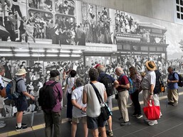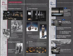There is a prescribed tour path to follow which begins with a clock showing August 6, 1945 and a satellite aerial view of the city centered at the blast zone. We move on to exhibits named "Cries of the Soul". I listen to the stories of the tricycle, belongings of junior high school students, the lunch box. The audio stories continue. There are some gloves, a tattered blouse. They go on. I think there are 60 or more of these. I find a seat in a quiet corner in the dark gallery and listen to many of the stories. It's pretty depressing, and there are 60 or 70 of these stories on the audio guide.