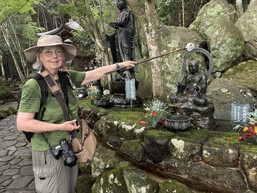 Alas, Mt. Fuji is "shy" today, which means it was obscured by clouds. But, we had ample time to explore the Fujisan World Heritage Center which was chock full of interesting displays.
