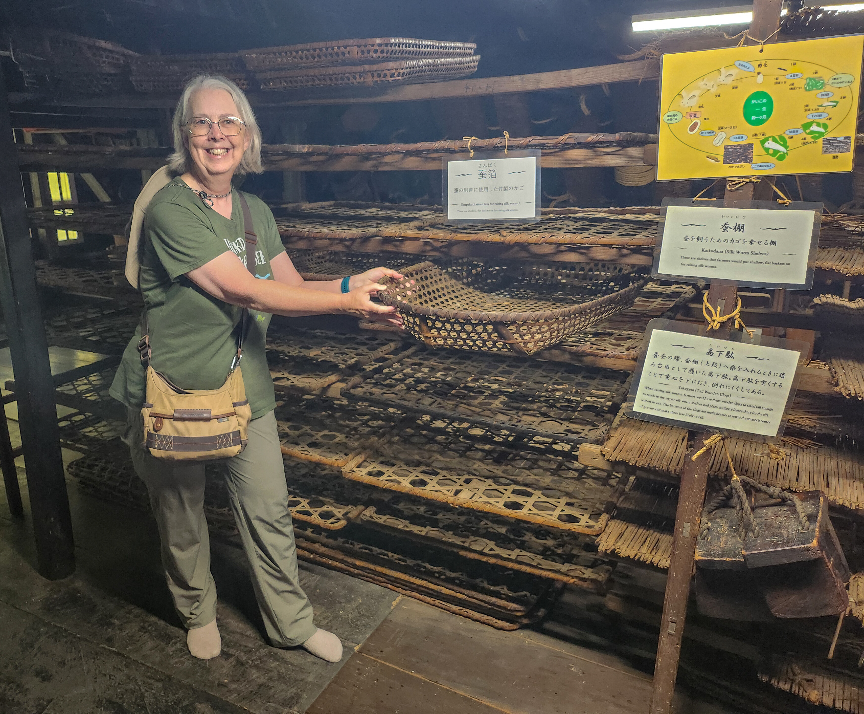 Silk worm shelves upstairs at Iwase-ke