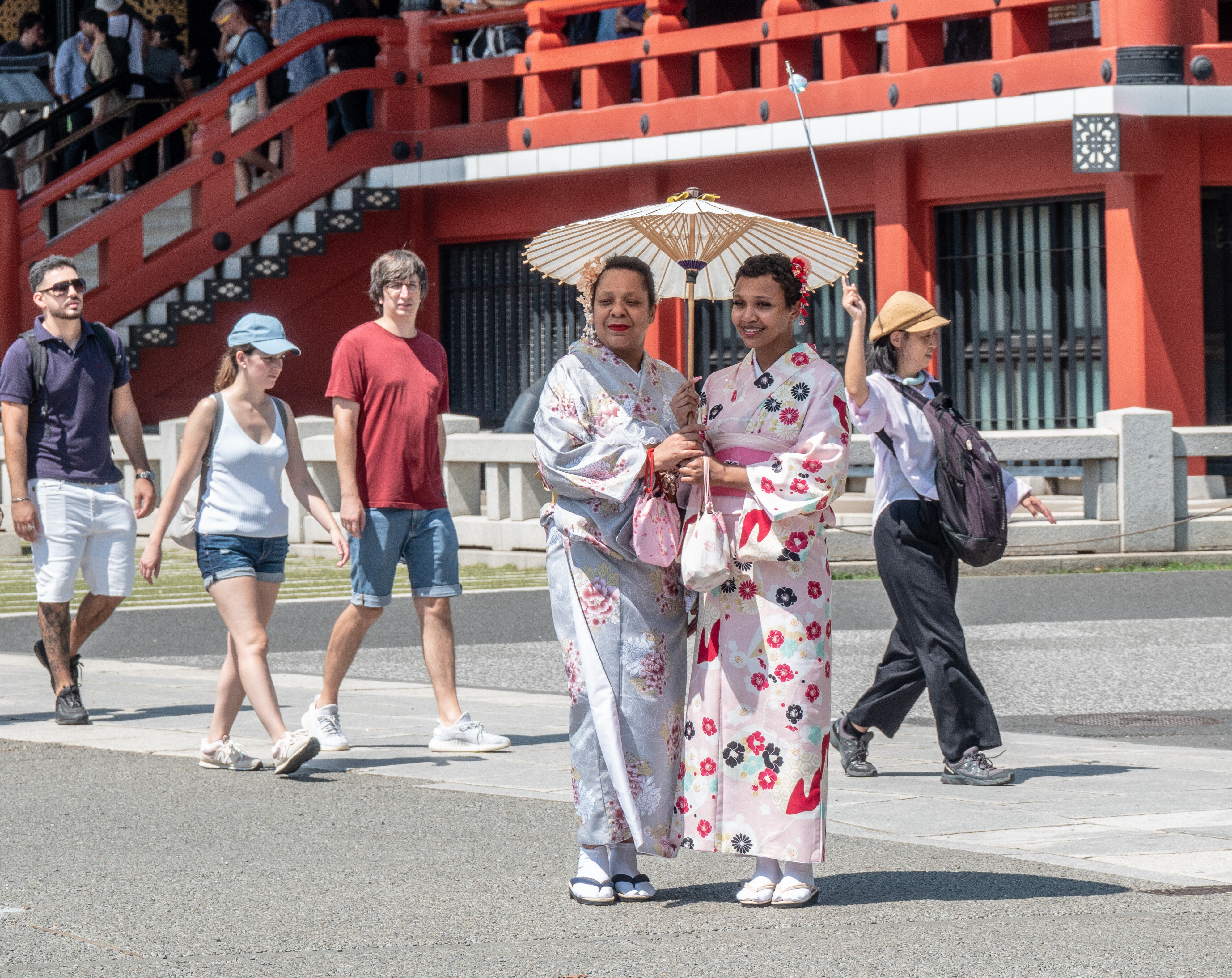 Ladies posing outside Sensoji Temple