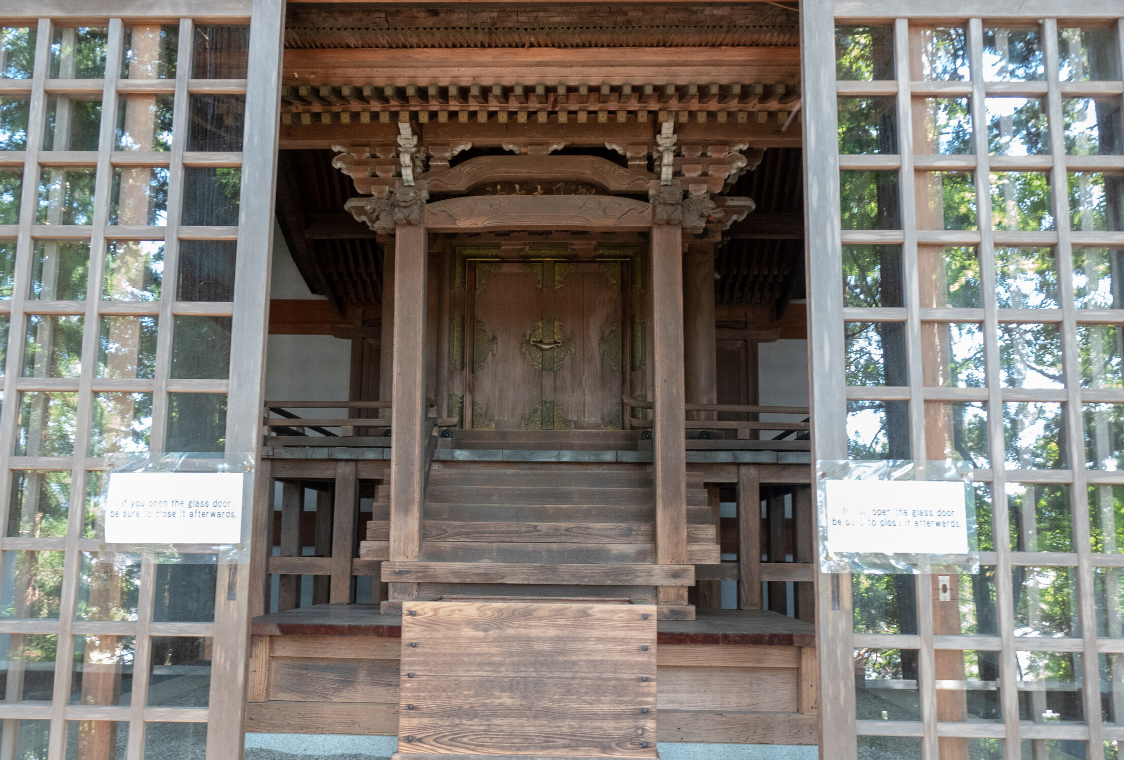 Inside the sliding doors at Sakurayama Hachimangu Shrine